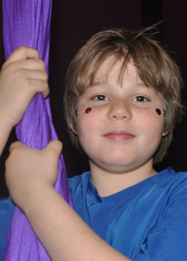 In December every year, the adults of the Lone Star Circus put on an amazing show. The kids from the circus school put on a pre-show. Last December, I did a balancing and juggling act — and I performed on the silks. Here’s some photos from that show.