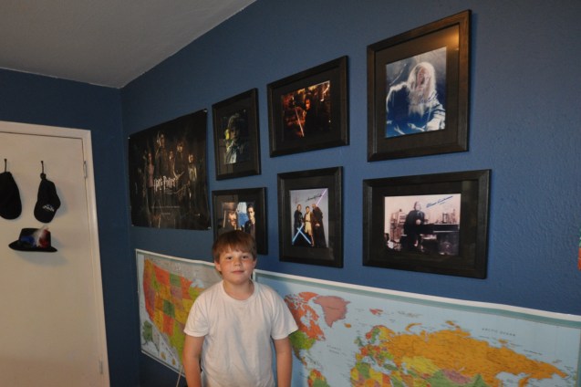 I picked out autographed pictures from Harry Potter, The Lord of the Rings, Star Wars, and Pirates of the Caribbean to decorate one wall of my room. I also put up world and U.S. maps there. I am going to mark all the places I go, and I am going to go everywhere…someday.