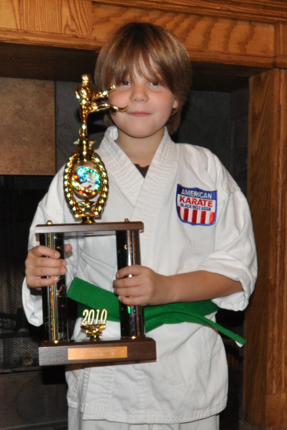 But now I spend so much time performing that I don’t have much time for karate any more. This photo is old — I only had a blue belt then, but this was my first time to win a 1st place trophy.