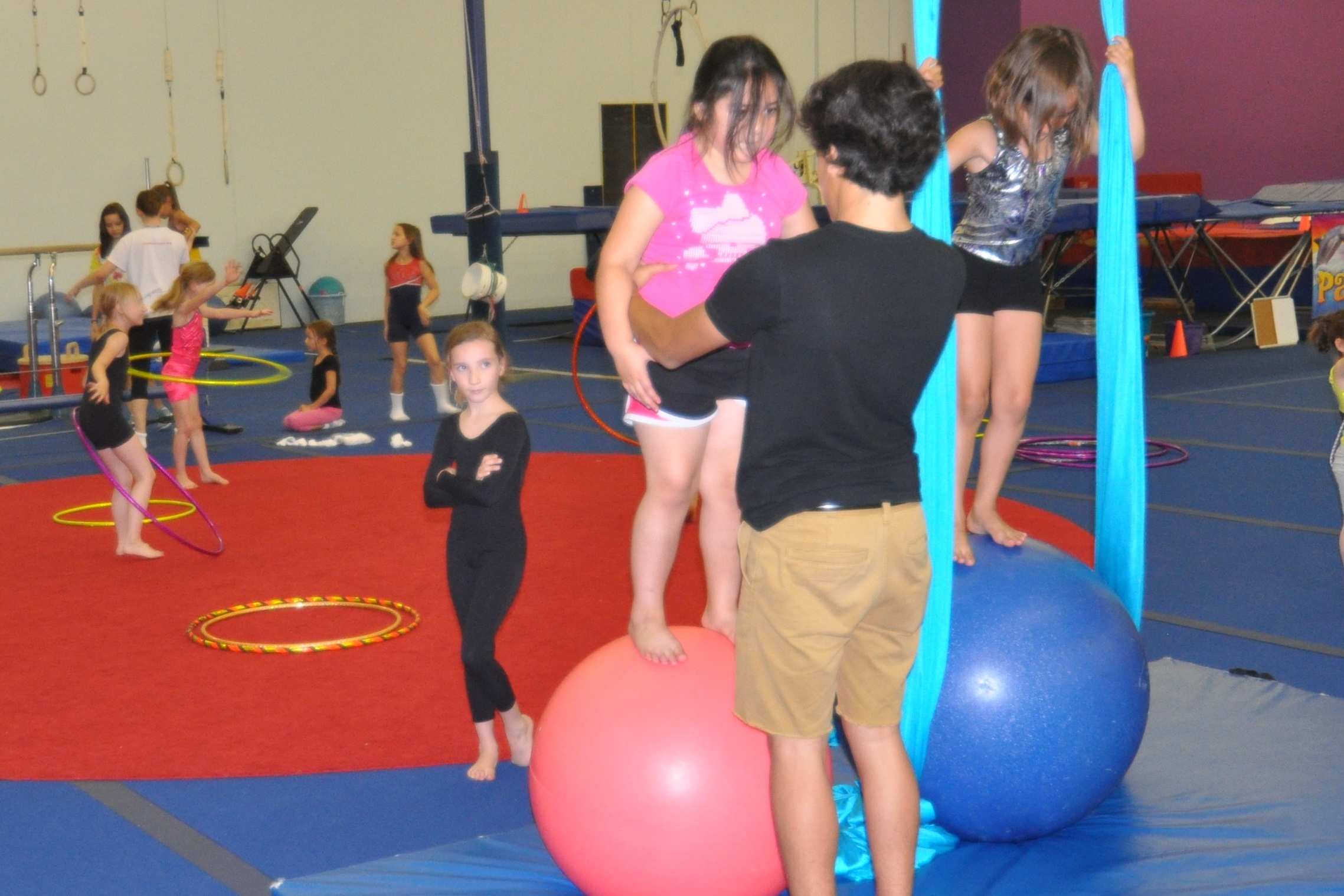 If you’re brand new to circus class, talk to the instructors about what class is right for you. Some kids come straight into advanced circus because they’ve had gymnastics or learned at home. Others start in a beginner class and move up. Either way, you’ll work hard, but you’ll have a lot of fun. I’ve been coming to class since I was 7, and I’m 12 now. I can’t imagine not doing this!