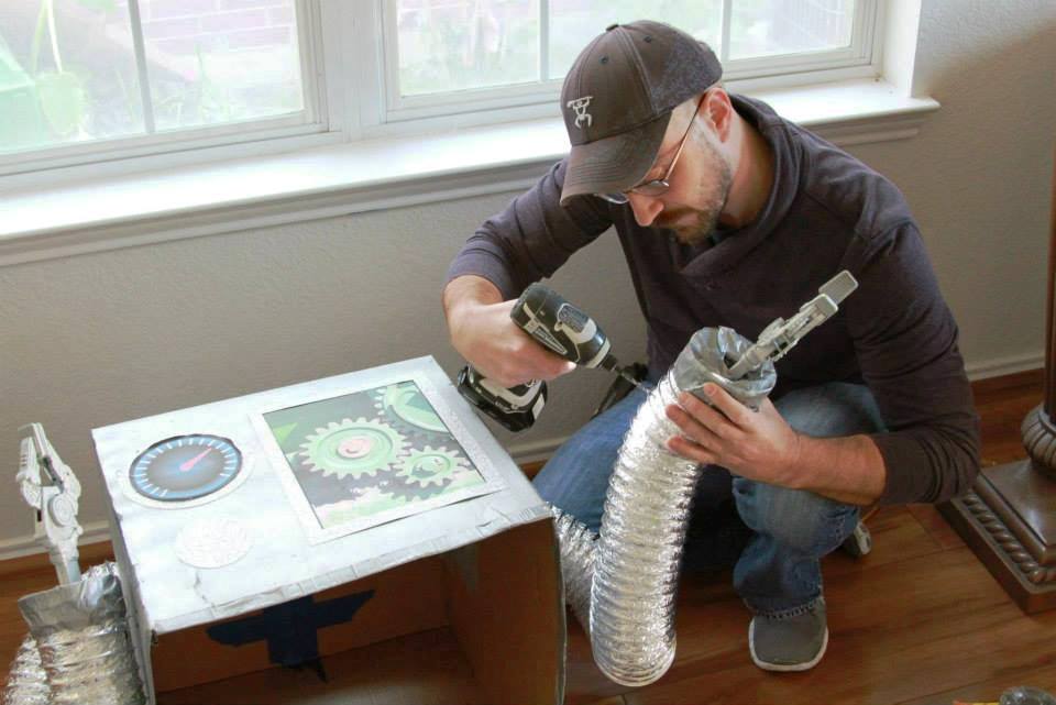 Adam Dietrich is the art director for the movie Ghede Origins — and he’s also one of the lead characters, a mercenary captain named Sarge who saves “my” family. He had to fix the robot costume I wear in one of the scenes — it didn’t fit that well. (They had planned to use younger kids for the roles, not a pair of 12-year-olds like me and Taylor Ernzen, I think).