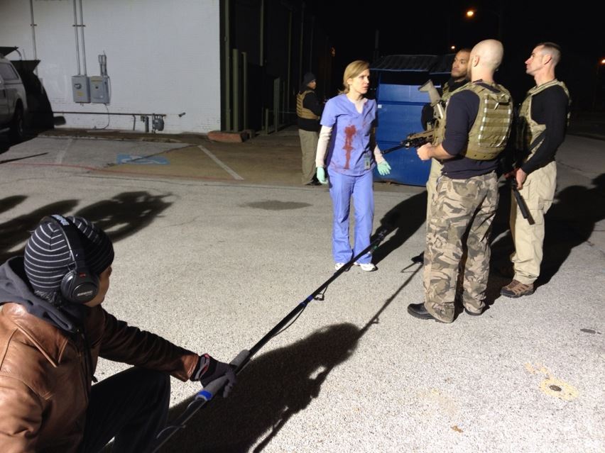 This is what I see from the sidelines when I’m not in a scene. This photo includes Cassie Shea Watson, Jesus Garcia, David Bates, Adam Dietrich, and Juan Pablo Segundo. Super nice actors, every one. I am lucky to get to work with them and watch them at work. Allan Tsybulnik took this photo.