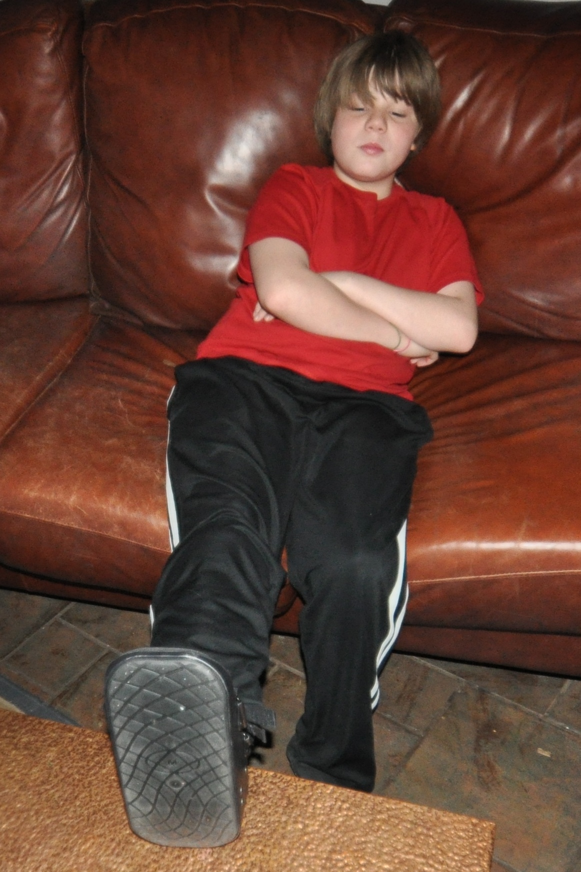 And then there was the Christmas present I didn’t want: a sprained ankle with a hairline fracture across the growth plate on my right foot. Yes, I got it on the trampoline. No, I didn’t fall off the trampoline (there is a huge net around it), and I didn’t put my foot through the springs (the springs are covered). I just landed a flip wrong, and I heard it pop.