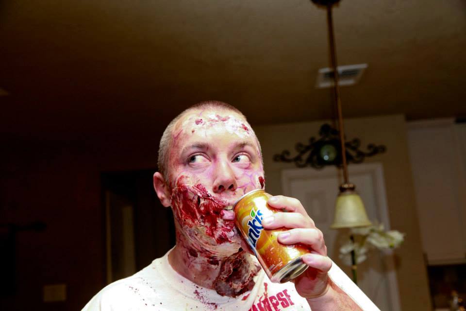 Who knew zombies liked Sunkist? The truth is, being a zombie extra in a movie is hard work, so the people who were wearing the zombie make-up would eat and drink almost anything when they got the chance! Luckily, the catering on this film was very good, and no one went hungry. Not even the zombies!
