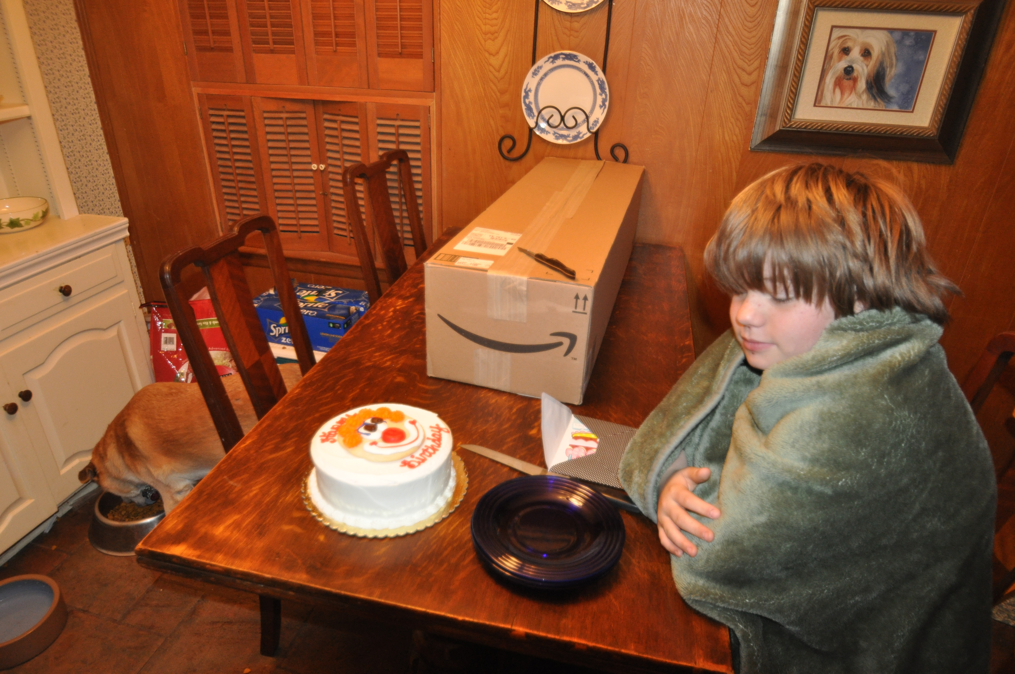 I nearly fell asleep this morning when we first cut the cake — but I liked the present I got to open before school: a new rip-stick!
