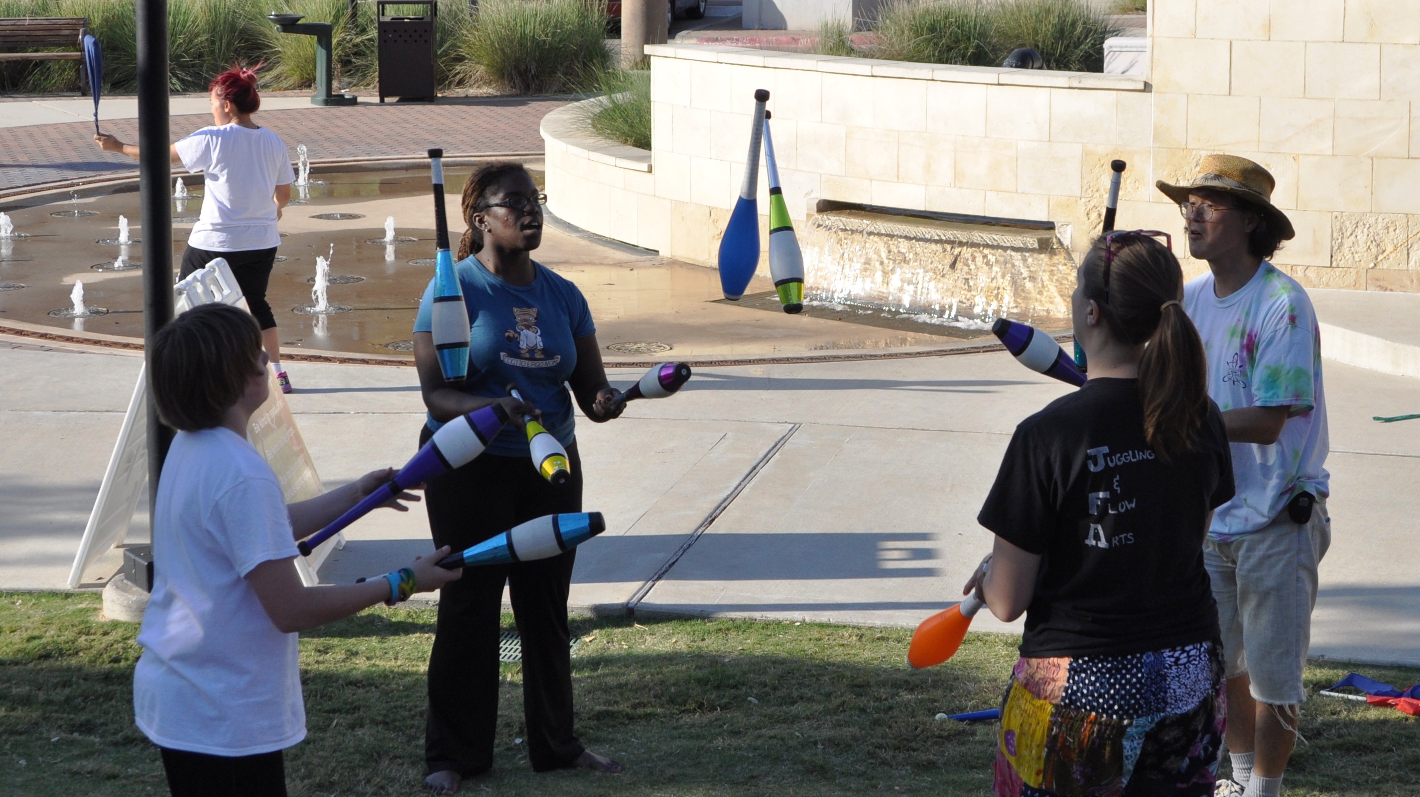 I love Spinfest! On the third Saturday of every month, people from all over North Texas get together at Eastside Plaza in Richardson (corner of Campbell and Central Expressway) to play. People of all ages just outside enjoying the sunshine and sharing their love of all things circus. It’s so much fun.