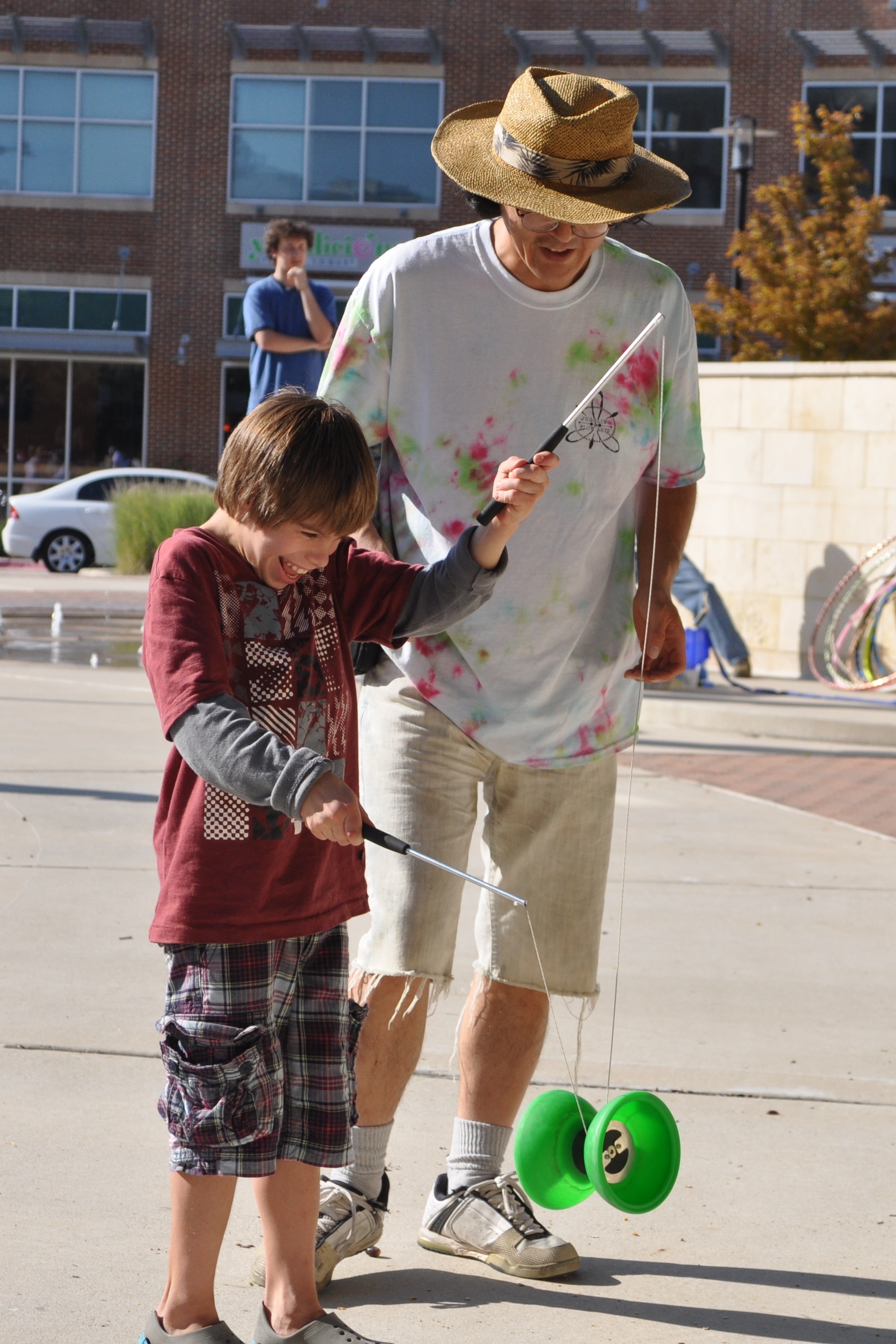 One of the cool things about SpinFest is that someone is always willing to teach you something new — whether you’re there for the first time, and have never tried something before, or you want to learn a new trick. This boy had never tried a diabolo before, and he had such a big grin when Katsu showed him how to get it going. It was awesome!