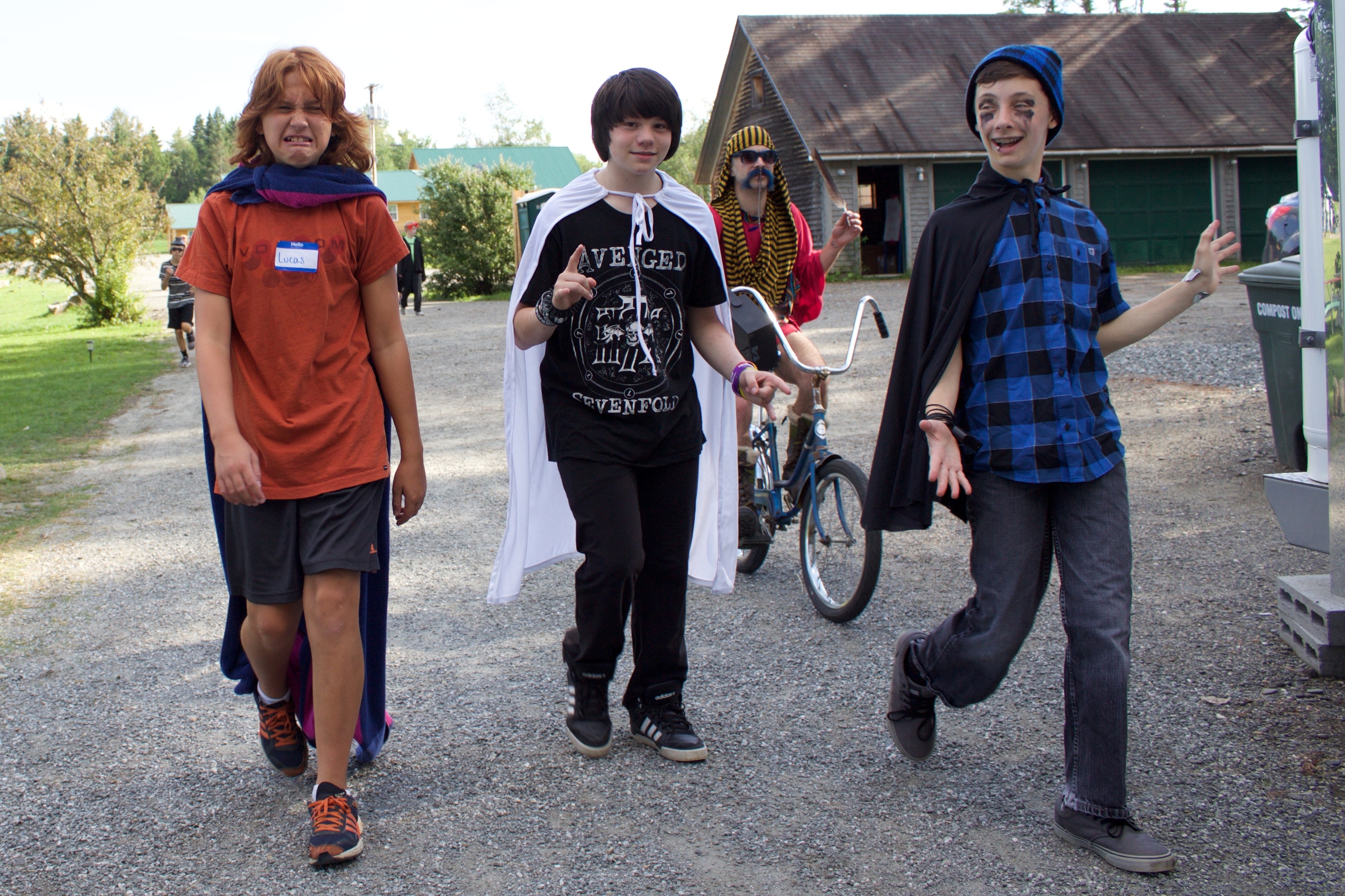 Campers on the way to dinner — Smirkus Camp’s dinner dress code calls for costumes around various themes. Themes aren’t announced until lunchtime each day, so campers pack a variety of costume pieces to use to create their unique looks.